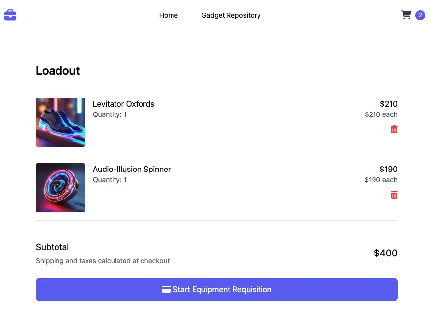 2. Observe that the items appear in your cart, as shown in the screenshot below: